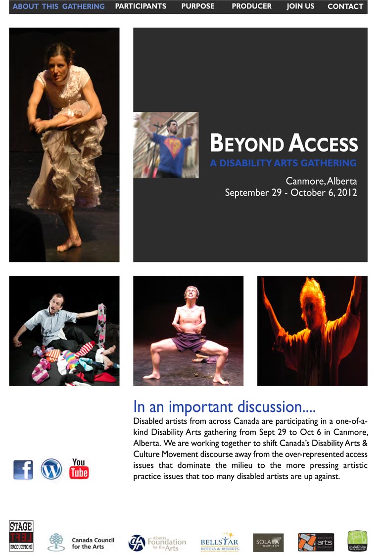 About This Gathering Participants Purpose Producer Join Us Contact Link to Stage Left web site Link to Canada Council for the Arts web site Link to the Alberta Foundation for the Arts web site Link to Bellstar Hotels and Resorts web site Link to Solara Resort and Spa web site Link to Calgary Arts Development web site Link to In-Definate Arts web site Link to Beyond Access Facebook page Link to Beyond Access Wordpress page Link to Beyond Access YouTube page